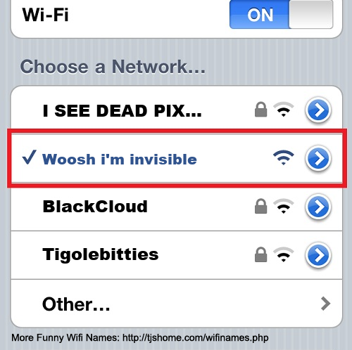 Funny WiFi Name #4361 [Woosh i'm invisible ]