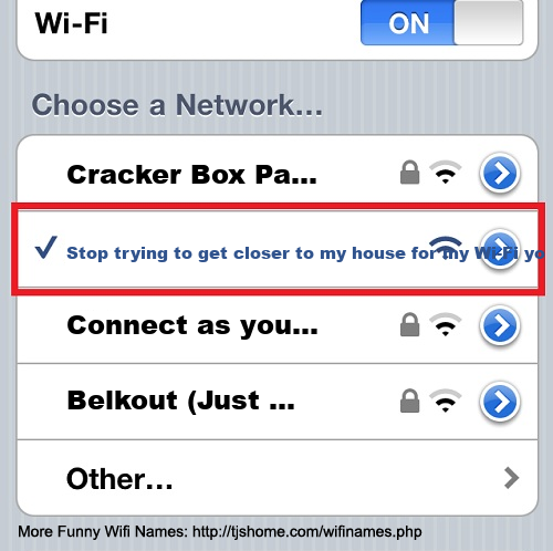 Funny WiFi Name #4503 [Stop trying to get closer to my house for my Wi-Fi yo! ]