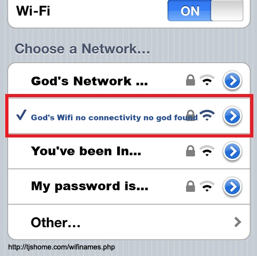 Funny WiFi Name #4542 [God's Wifi no connectivity no god found ]