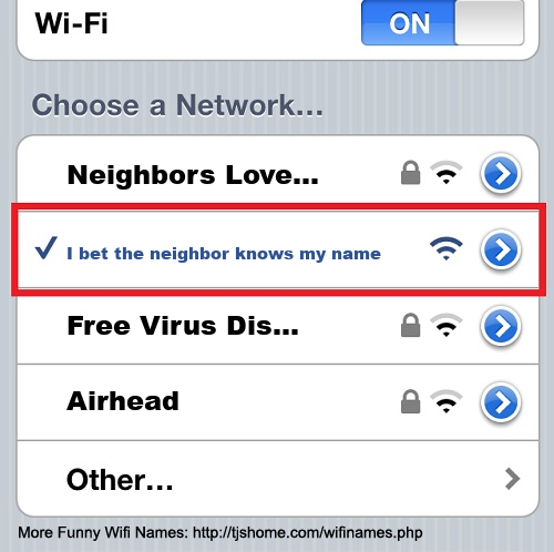 Funny WiFi Name #4551 [I bet the neighbor knows my name ]