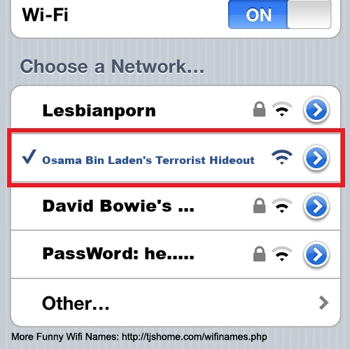 Funny WiFi Name #4556 [Osama Bin Laden's Terrorist Hideout ]