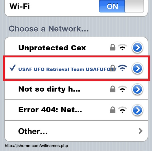 Funny WiFi Name #4910 [USAF UFO Retrieval Team USAFUFO17 ]