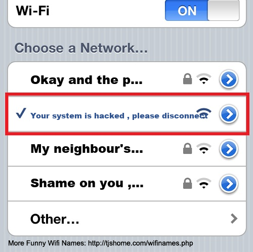 Funny WiFi Name #4943 [Your system is hacked , please disconnect ]