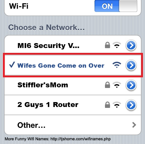 Funny WiFi Name #5499 [Wifes Gone Come on Over ]