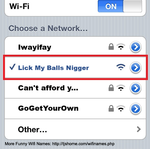 Funny WiFi Name #5517 [Lick My Balls Nigger ]
