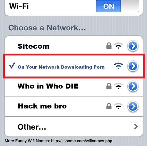 Funny WiFi Name #5676 [On Your Network Downloading Porn ]