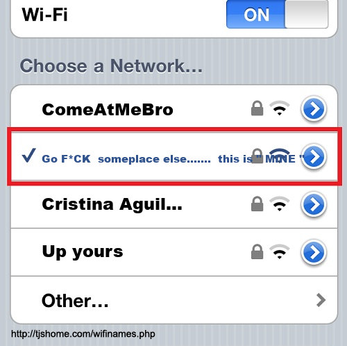 Funny WiFi Name #5701 [Go F*CK someplace else....... this is " MINE " ]