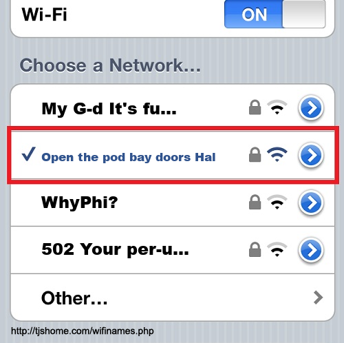 Funny WiFi Name #5982 [Open the pod bay doors Hal ]