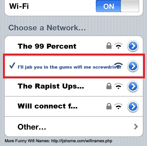 Funny WiFi Name #6509 [I'll jab you in the gums wifi me screwdriver ]