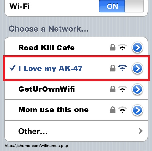 Funny WiFi Name #6598 [I Love my AK-47 ]
