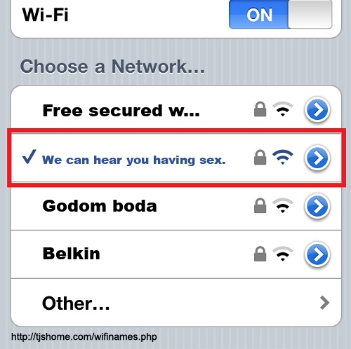 Funny WiFi Name #6608 [We can hear you having sex. ]