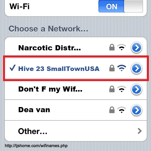 Funny WiFi Name #6738 [Hive 23 SmallTownUSA ]
