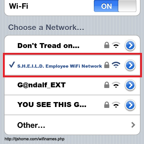 Funny WiFi Name #6818 [S.H.E.I.L.D. Employee WiFi Network ]