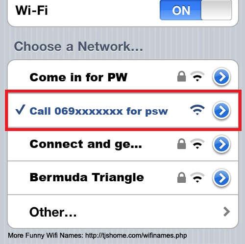 Funny WiFi Name #6847 [Call 069xxxxxxx for psw ]