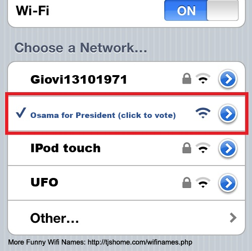 Funny WiFi Name #6899 [Osama for President (click to vote) ]