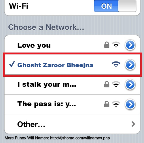 Funny WiFi Name #6937 [Ghosht Zaroor Bheejna! ]