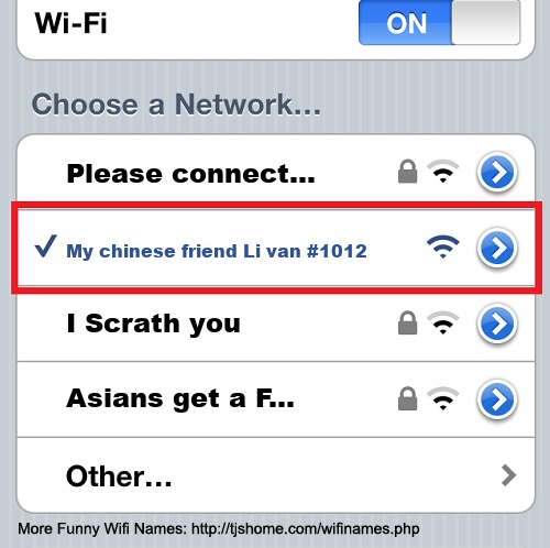 Funny WiFi Name #7473 [My chinese friend Li van #1012 ]