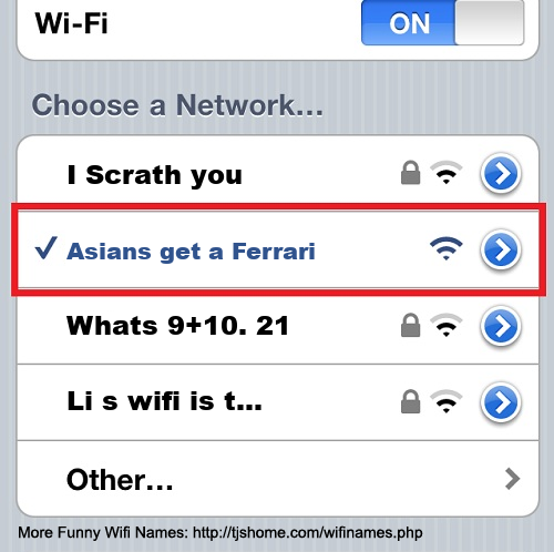 Funny WiFi Name #7475 [Asians get a Ferrari ]