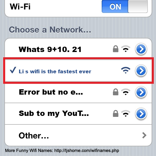 Funny WiFi Name #7477 [Li s wifi is the fastest ever ]