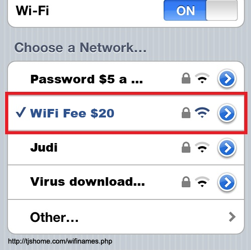 Funny WiFi Name #7526 [WiFi Fee $20 ]