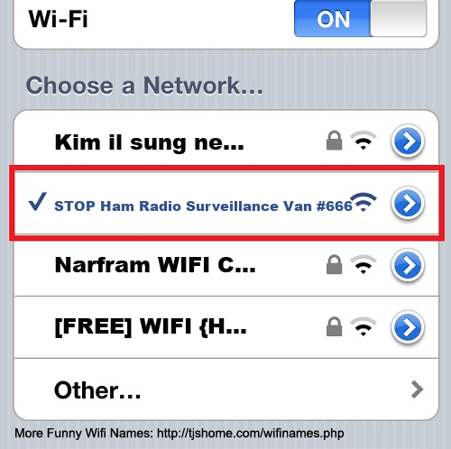 Funny WiFi Name #7554 [STOP!! Ham Radio Surveillance Van #666 ]