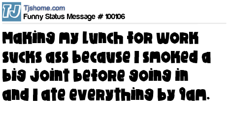 X Making my lunch for work sucks ass because I smoked a big joint before going in and I ate everything by 9am.