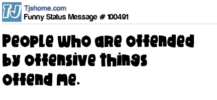 - # 122522 Being offended is a personal decision that you can choose not to make. The ones who are offended by things are attention-seeking drama queens.