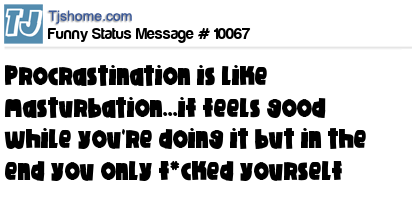 X says Procrastination is like masturbation...if feels good while you're doing it but in the end you only f*cked yourself