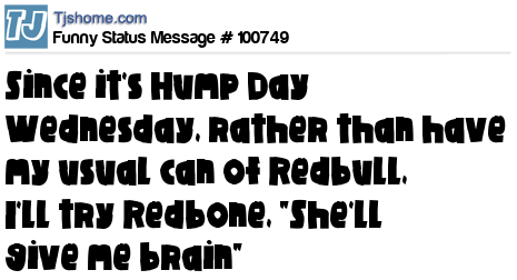 X is Since it's Hump Day Wednesday, rather than have my usual can of Redbull, I'll try Redbone, "She'll give me brain"
