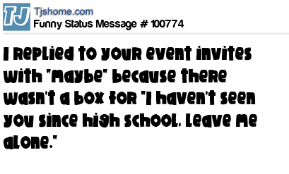 X I replied to your event invites with "maybe" because there wasn't a box for "I haven't seen you since high school, leave me alone."