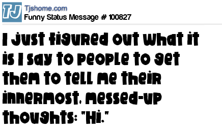 X I just figured out what it is I say to people to get them to tell me their innermost, messed-up thoughts: "Hi."