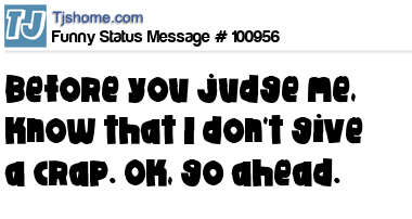 X Before you judge me, know that I don't give a crap. Ok, go ahead.