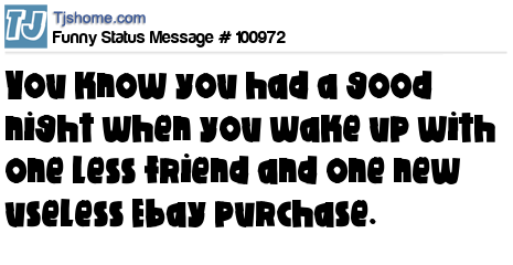 X is You know you had a good night when you wake up with one less friend and one new useless Ebay purchase.
