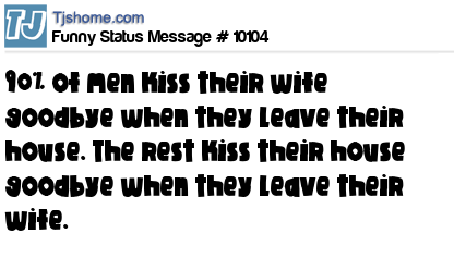 - # 179414 75% of men kiss their wives goodbye when they leave the house. 90% kiss their house goodbye when they leave their wives.