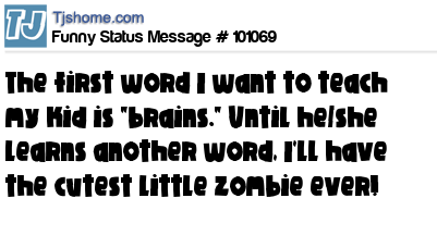 X The first word I want to teach my kid is "brains." Until he/she learns another word, I'll have the cutest little zombie ever!