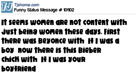 X says It seems women are not content with just being women these days. First there was Beyonce with “If I was a boy” now there is this Bieber chick with “If I was your boyfriend”