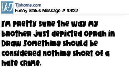 X I'm pretty sure the way my brother just depicted Oprah in Draw Something should be considered nothing short of a hate crime.