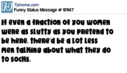X says If even a fraction of you women were as slutty as you pretend to be here, there'd be a lot less men talking about what they do to socks.