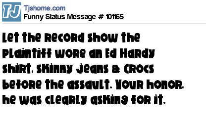 X says Let the record show the plaintiff wore an Ed Hardy shirt, skinny jeans & Crocs before the assault. Your honor, he was clearly asking for it.