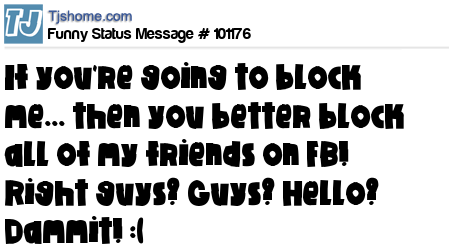 X If you're going to block me... then you better block all of my friends on FB! Right guys? Guys? Hello? Dammit! :(