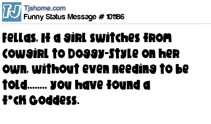 X Fellas, If a girl switches from Cowgirl to Doggy-Style on her own, without even needing to be told........ you have found a f*ck Goddess.