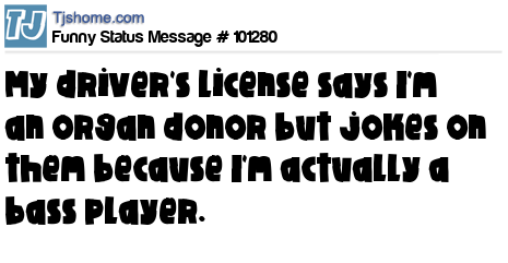 X My driver's license says I'm an organ donor but jokes on them because I'm actually a bass player.