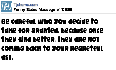 X says Be careful who you decide to take for granted, because once they find better, they are NOT coming back to your regretful ass.