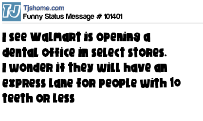 - # 208738 Walmart is opening dental offices in some of its stores. I'm sure they will have an express lane for people with 10 teeth or less.