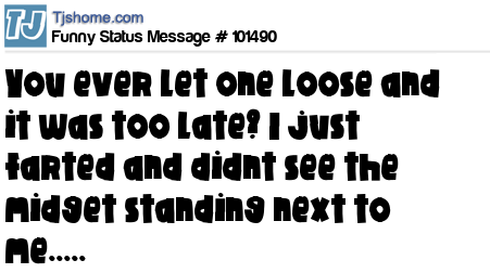 X  You ever let one loose and it was too late? I just farted and didnt see the midget standing next to me.....