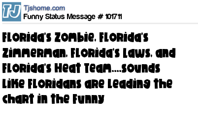 X Florida's Zombie, Florida's Zimmerman, Florida's Laws, and Florida's Heat Team....sounds like Floridans are leading the chart in the Funny