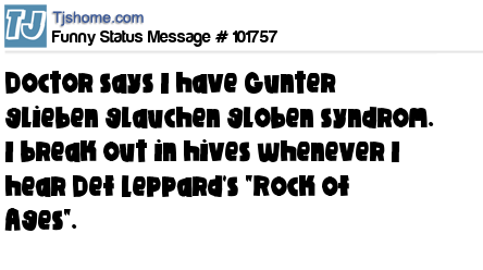 X says Doctor says I have Gunter glieben glauchen globen syndrom. I break out in hives whenever I hear Def Leppard's "Rock of Ages".