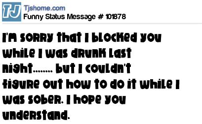 X  I'm sorry that I blocked you while I was drunk last night........ but I couldn't figure out how to do it while I was sober. I hope you understand.