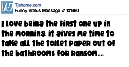 X I love being the first one up in the morning, it gives me time to take all the toilet paper out of the bathrooms for ransom....