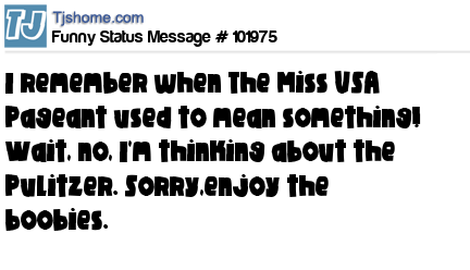 X says I remember when The Miss USA Pageant used to mean something! Wait, no, I'm thinking about the Pulitzer. Sorry,enjoy the boobies.